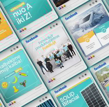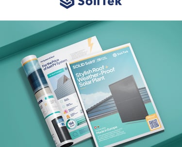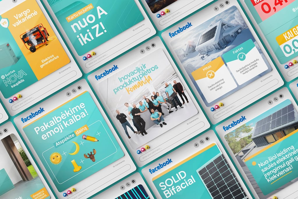 SoliTek yra vienintelė saulės modulių ir išmaniųjų baterijų gamintoja šiaurės Europoje. Šiai įmonei tikslas buvo atrasti ir sukurti savo unikalų identitetą. Sukurtas žaismingas, bet tuo pačiu ir kokybe dvelkiantis vizualinis identitetas. Sukurta dizaino sistema padedanti komplikuotą ir mažai kam pažįstamą produktą pateikti klientui taip, kad būtų labai lengva susigaudyti. Dizaino sistema taip pat padeda pardavėjams lengviau komunikuoti bendraujant su klientu ir pristatyti pačius svarbiausius produktų ir įmonės privalumus. Sukurta dizaino sistema naudojama socialiniams tinklams, individualioms prezentacijoms, lankstinukams, bukletams, produktų instrukcijoms, lipdukams, parodų stendams, banerias ir t.t.