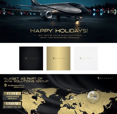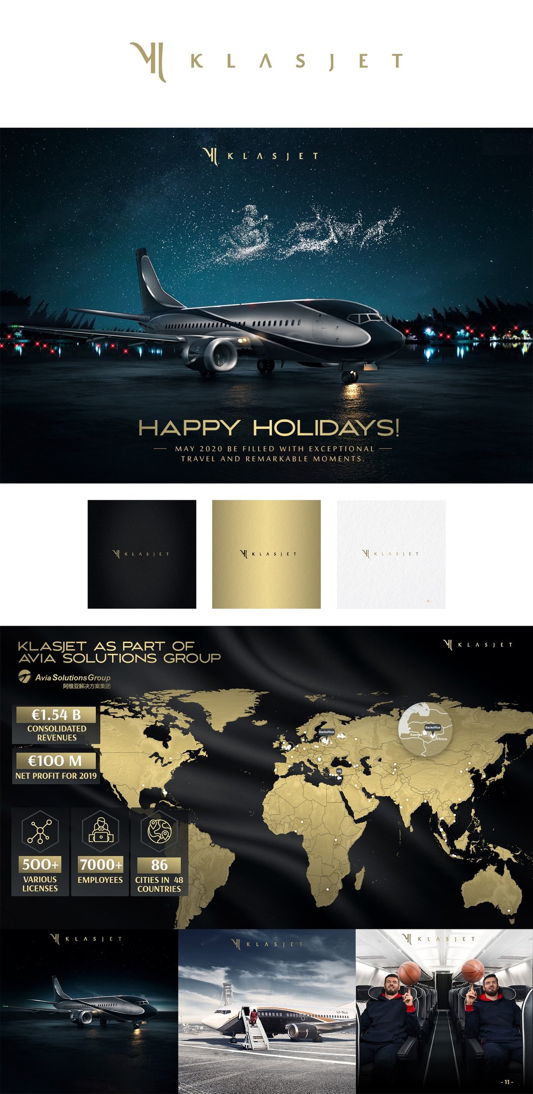 KlasJet yra privačių užsakomųjų skrydžių ir verslo aviacijos paslaugų teikėjas Europoje. Šios įmonės tikslas buvo atrasti ir sukurti savo unikalų vizualinį identitetą, kuris atspindėtų prabangą, išskirtinumą ir aukščiausią paslaugų kokybę. Sukurtas elegantiškas, tačiau modernus vizualinis identitetas, perteikiantis išskirtinę skrydžių patirtį.